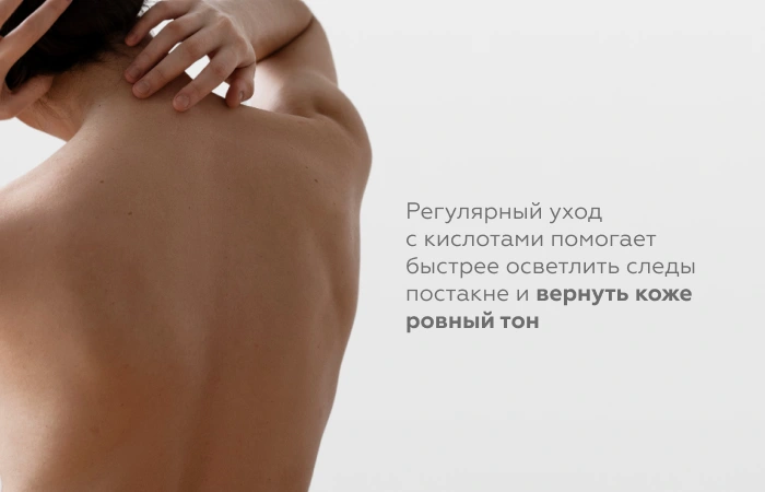 Регулярный уход с кислотами помогает быстрее осветлить следы постакне и вернуть коже ровный тон