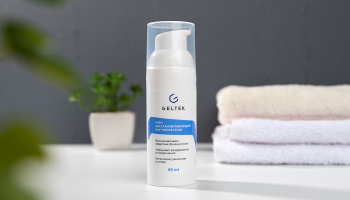 Прежде всего при выборе средства стоит ориентироваться на состав. Какой он должен быть, разберём на примере восстанавливающего крема NMF-protection от «Гельтек».